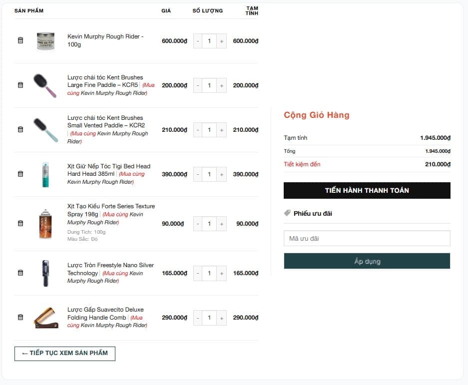 - Nếu khách hàng xóa sản phẩm chính khỏi giỏ hàng, toàn bộ combo cũng bị xóa theo.