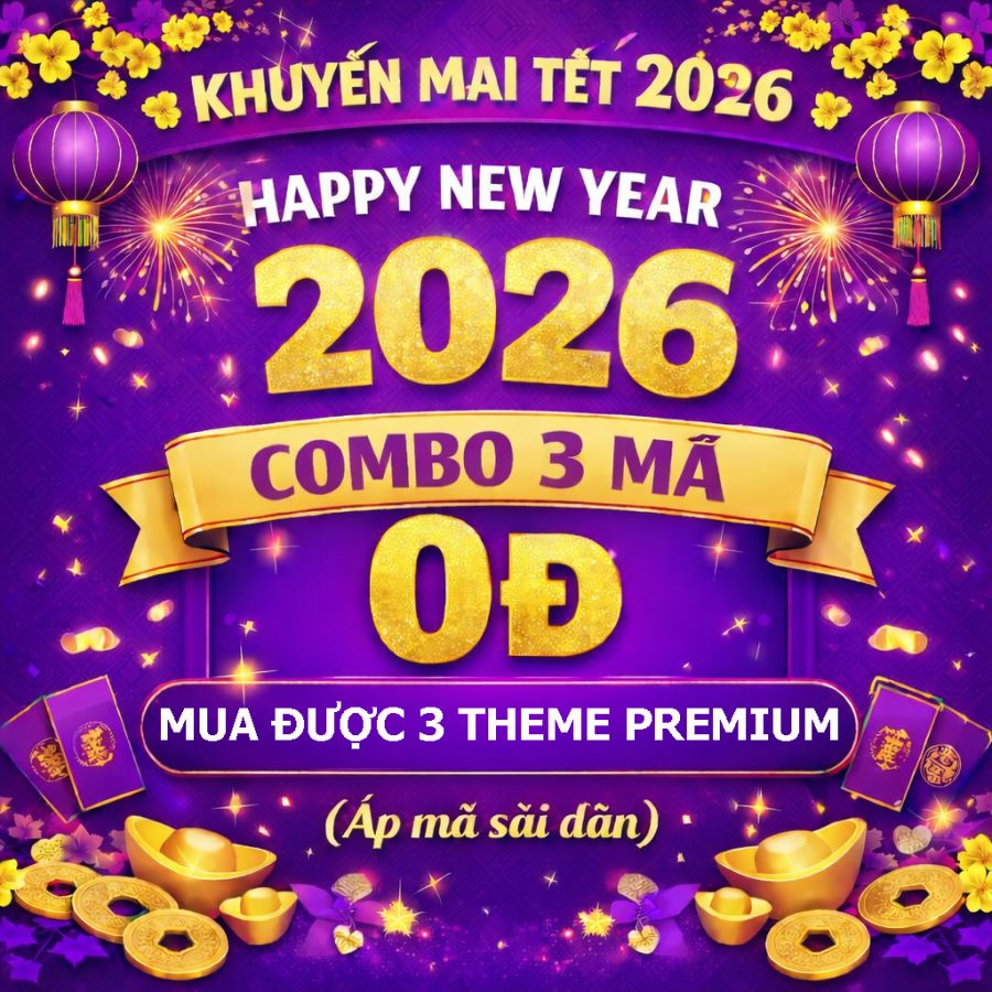Combo Tết 2026 – 3 Mã Giảm Giá Theme Premium (dùng dần, không giới hạn thời gian)