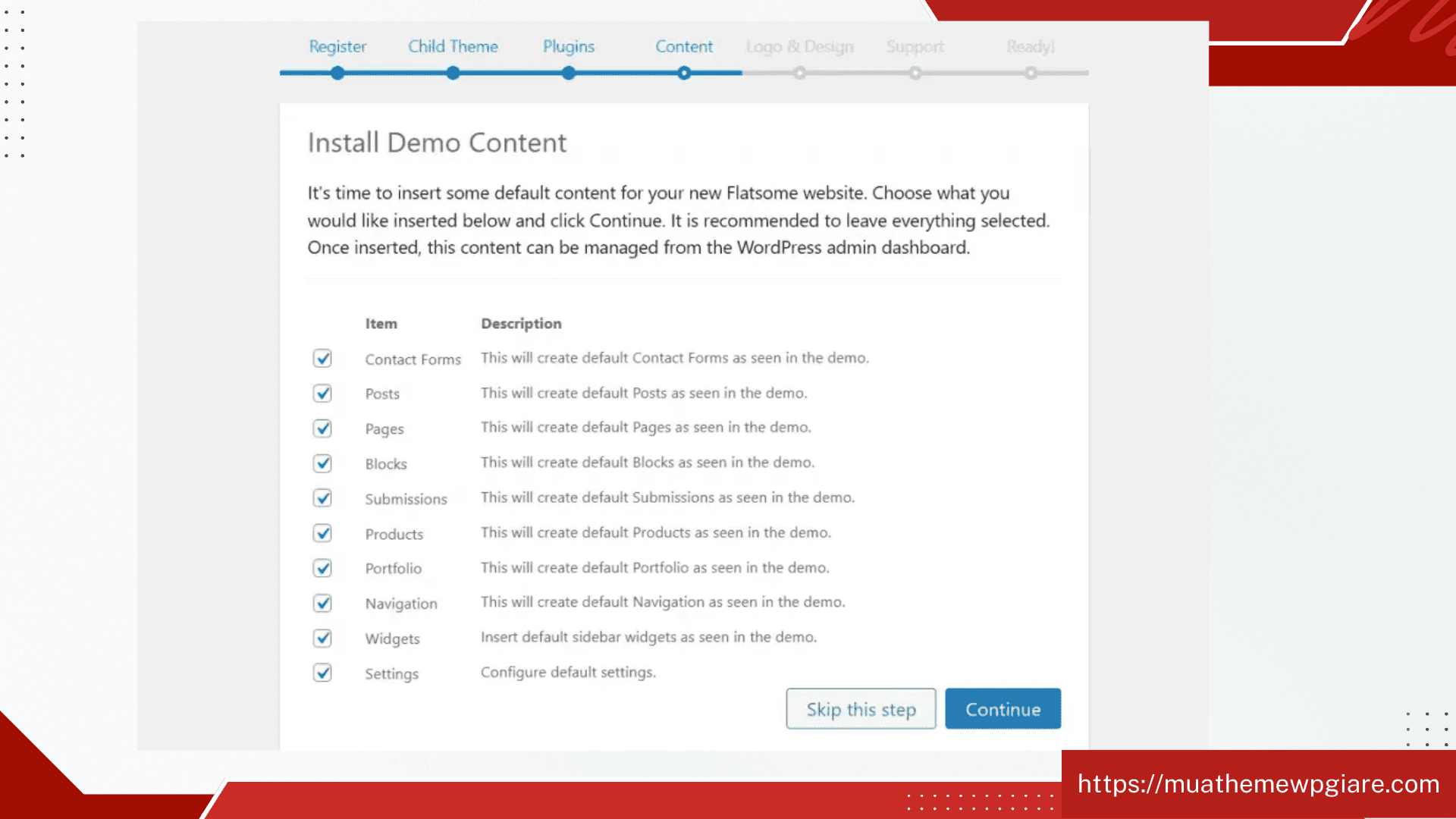 - Để nhập dữ liệu demo, bạn truy cập vào menu Flatsome > Import Demo