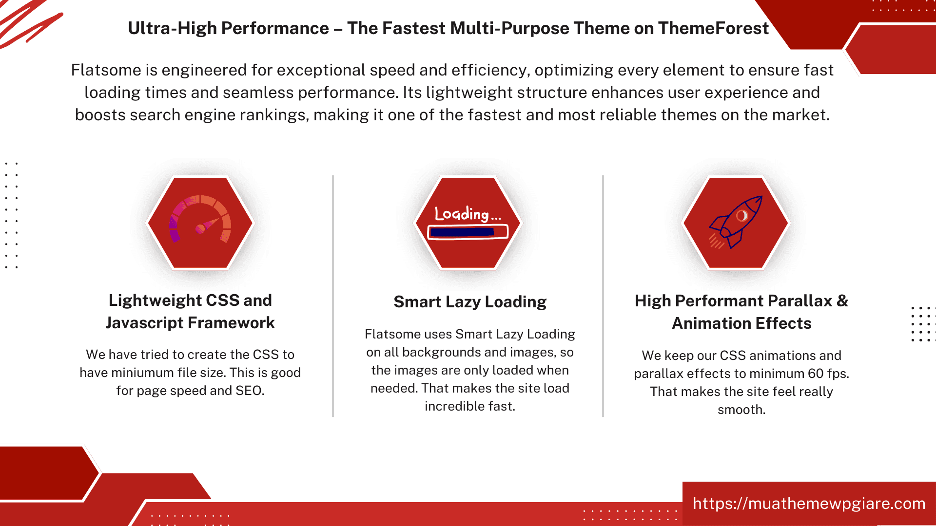 Điểm nổi bật của Flatsome không chỉ nằm ở khả năng tùy chỉnh mạnh mẽ mà còn ở sự tối ưu hóa hiệu suất vượt trội. Theme này được thiết kế để đảm bảo tốc độ tải trang nhanh, giao diện thân thiện với thiết bị di động và khả năng hiển thị mượt mà trên mọi trình duyệt. Nhờ đó, doanh nghiệp có thể nâng cao trải nghiệm người dùng, giữ chân khách hàng lâu hơn và cải thiện tỷ lệ chuyển đổi.