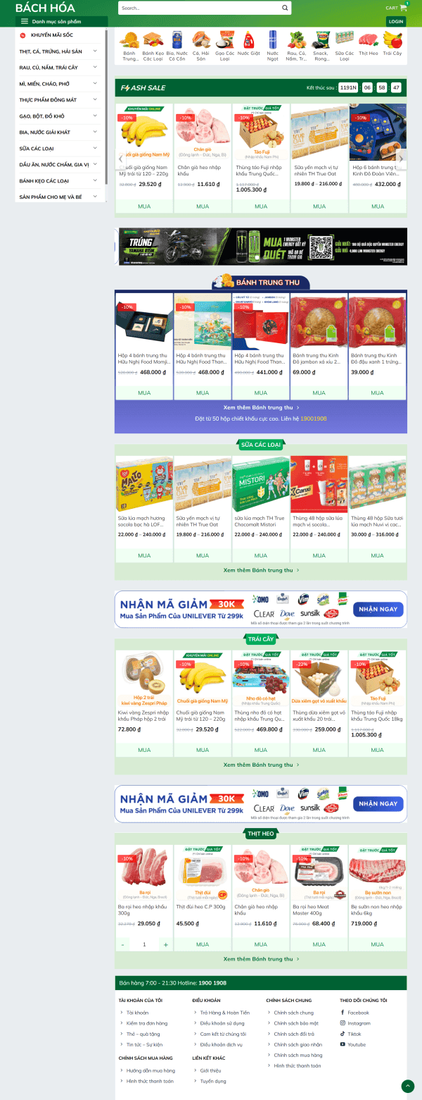 - Hiển thị danh mục rau củ, thịt cá rõ ràng