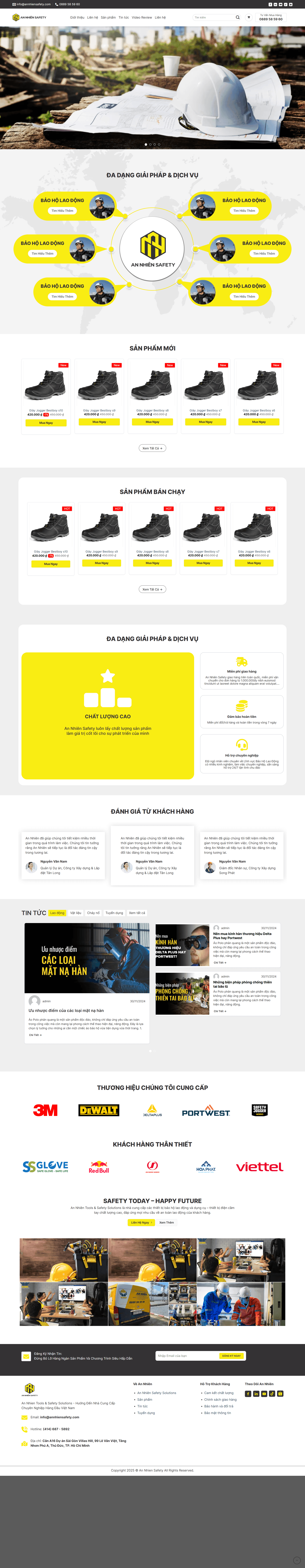 Theme có bố cục khoa học, giúp khách hàng dễ dàng tìm kiếm sản phẩm như quần áo bảo hộ lao động, giày bảo hộ chống trượt, găng tay bảo hộ, kính bảo hộ lao động… Trang chủ được thiết kế trực quan, tích hợp các danh mục sản phẩm nổi bật và khu vực hiển thị khuyến mãi.