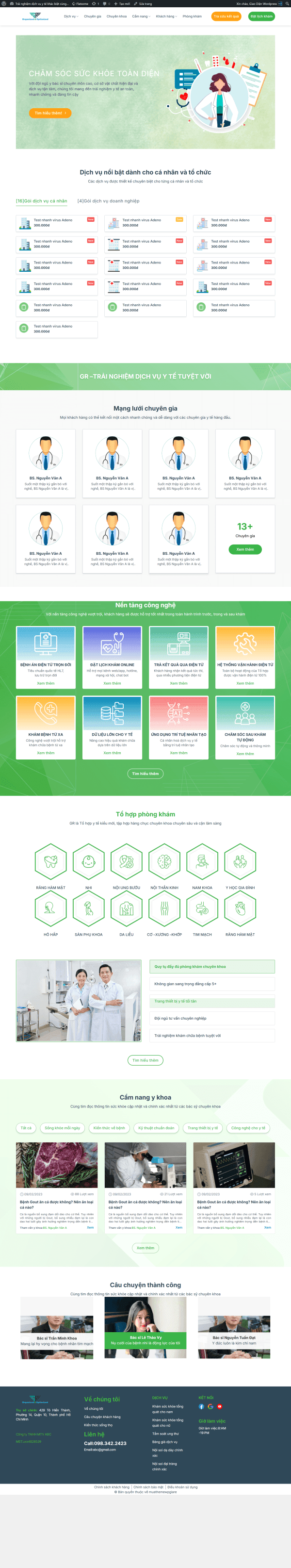 Bạn đang tìm một giao diện phòng khám đa khoa nhưng không vừa ý? Giao diện Theme WordPress Phòng Khám Đa Khoa 03 là mẫu thiết kế chuyên biệt dành riêng cho các cơ sở y tế, phòng khám, trung tâm khám chữa bệnh hiện đại. Được phát triển trên nền tảng Flatsome, theme này không chỉ tối ưu tốc độ tải trang mà còn đảm bảo khả năng tương thích mượt mà trên mọi thiết bị di động, từ điện thoại đến tablet. Đây là lựa chọn được nhiều phòng khám tại Việt Nam tin dùng, đặc biệt với giao diện trực quan giúp bệnh nhân dễ dàng đặt lịch hẹn và tìm kiếm thông tin dịch vụ